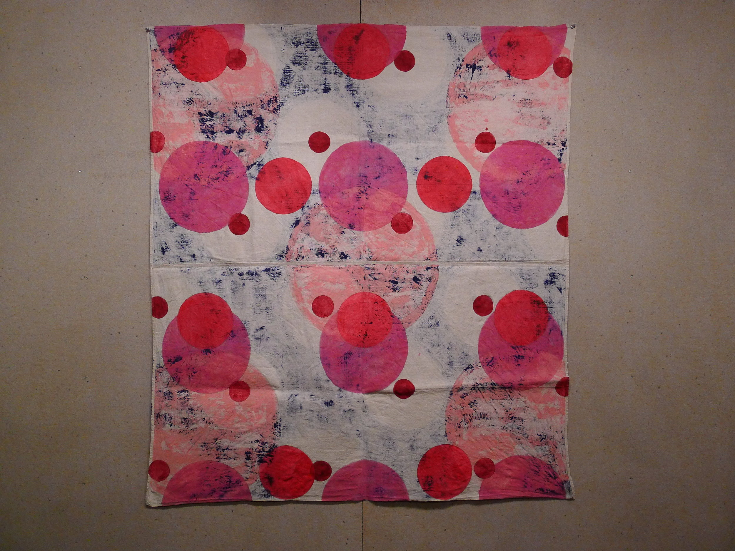 Blue/Pink, side 2, from Particles series, acrylic on vintage Italian military linen